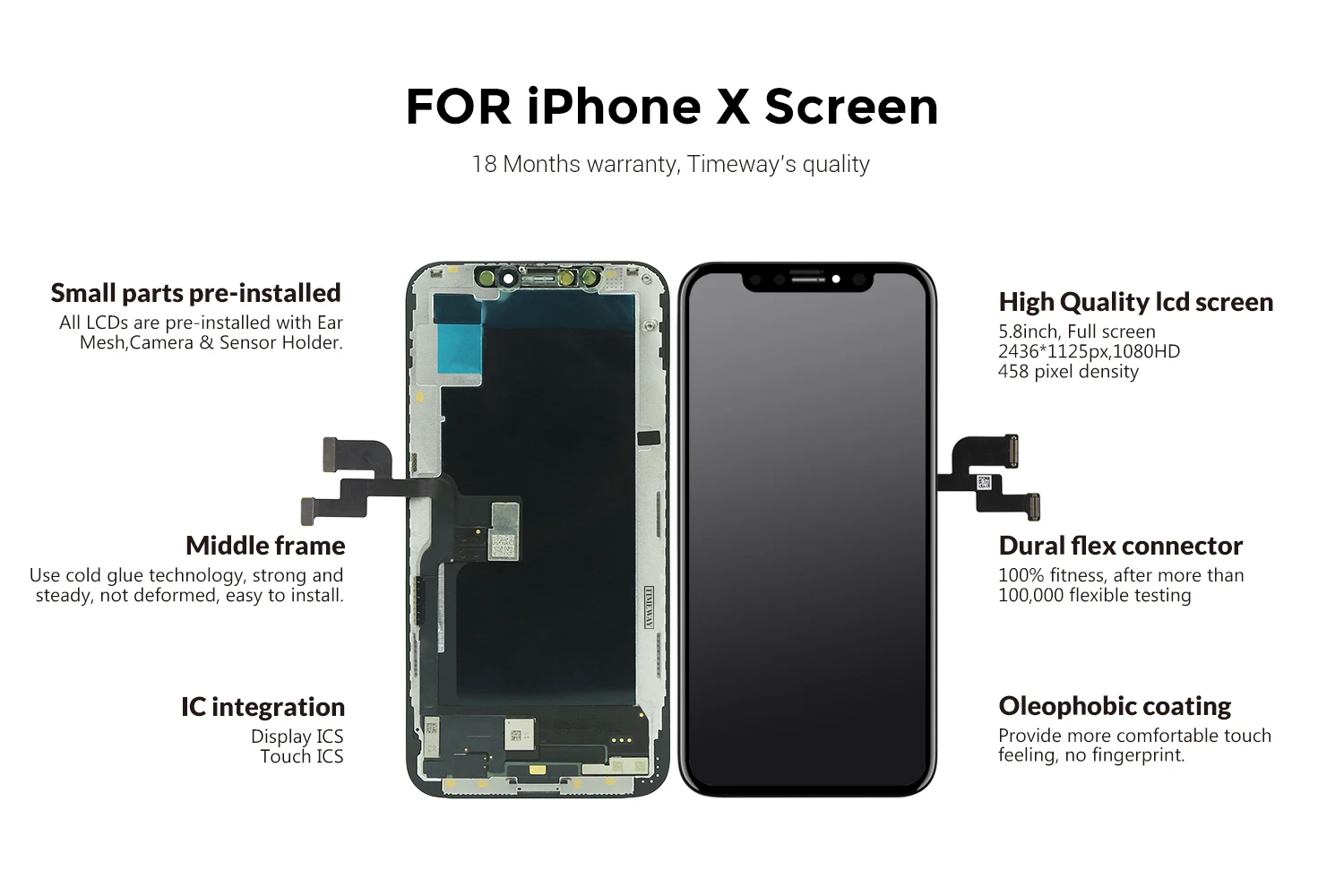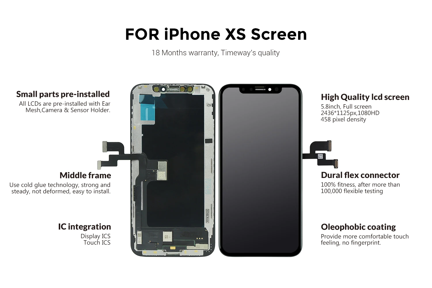 Grade For iPhone X, S Max, XR, LCD, Display, For Tianma OLED OEM Touch Screen With Digitizer Replacement Assembly Parts Black